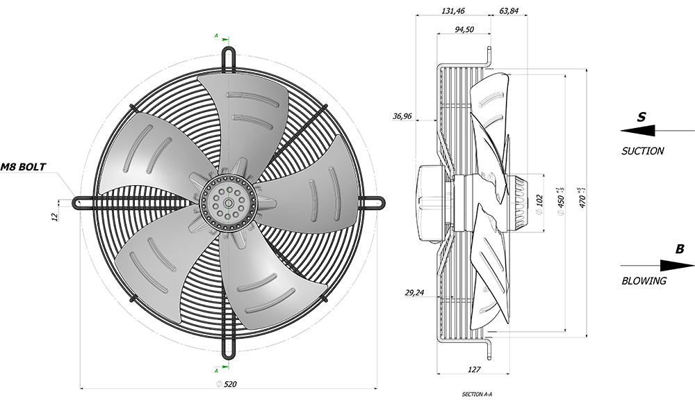 - Product can be produced with suction/blowing air flow direction and single-phase/three-phase motor options.