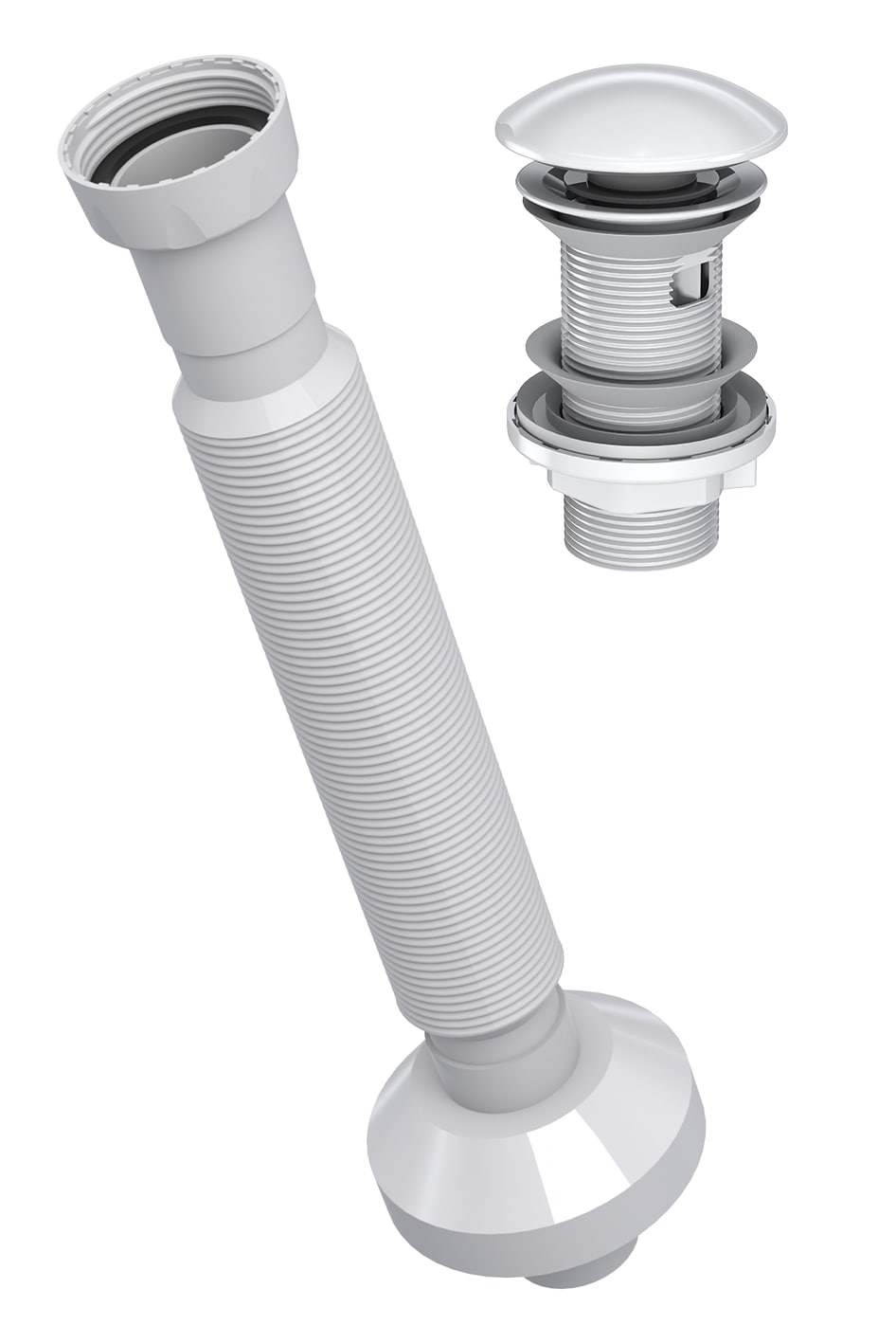 Extendable Flexible Waste Pipe with Pop Up Centre-Pin Basin Waste Ceramic WHITE(With overflow)