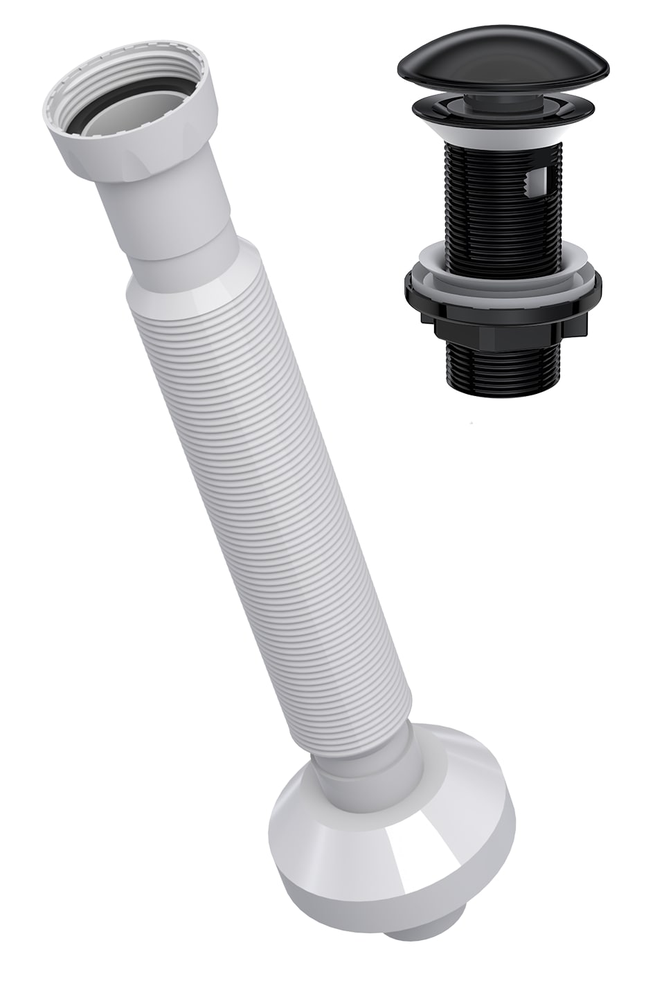 Extendable Flexible Waste Pipe Pop Up Ceramic Centre-Pin Basin Waste BLACK (With overflow)
