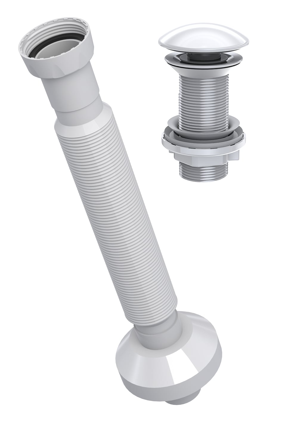 Extendable Flexible Waste Pipe Pop Up Centre-Pin Basin Waste Ceramic WHITE (Without overflow)